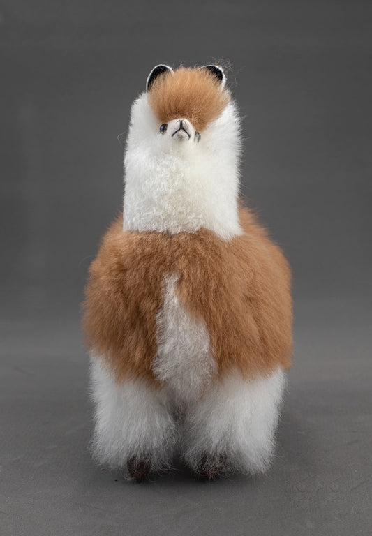 Alpaca Fur Stuffed Animal - Brown/White Llama