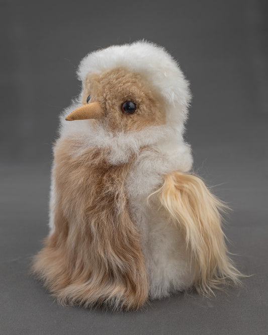 Alpaca Fur Stuffed Animal - Beige/White Owl