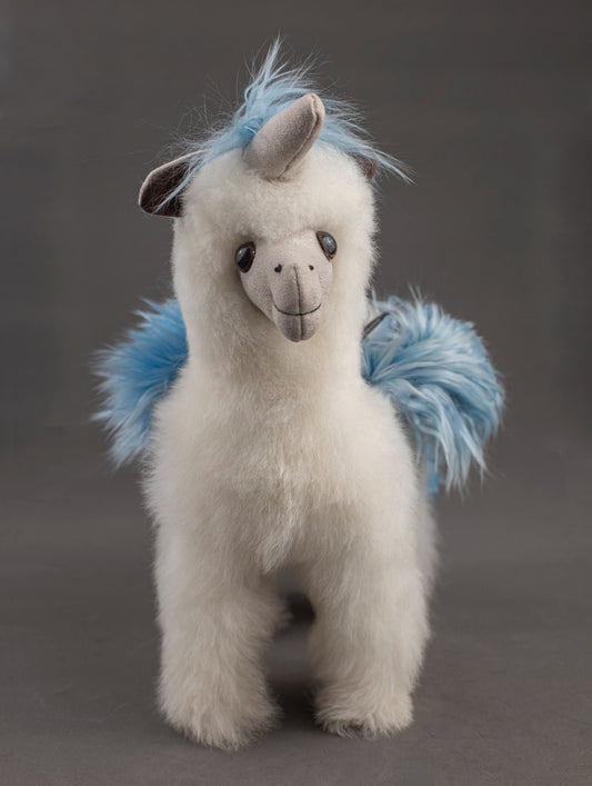 Alpaca Fur Stuffed Animal - White/Blue Unicorn