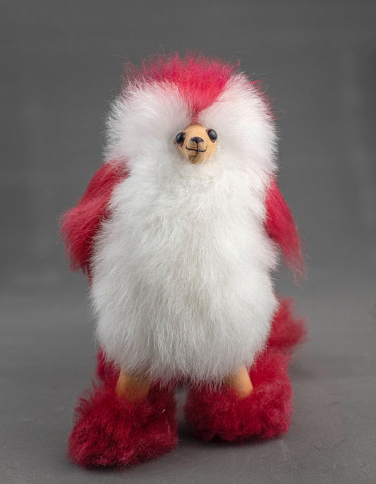 Alpaca Fur Stuffed Animal - Red/White Dog