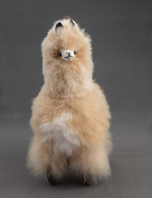 Alpaca Fur Stuffed Animal - Light Brown/White
